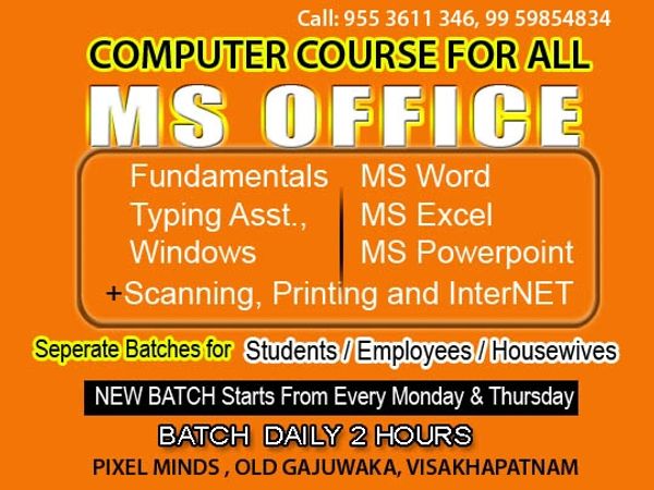 MS Office, C Language Programming, C++, Java Programming, Oracle, Linux, Auto Cad,Tally, Python, .net, Php, Data Entry, ...etc.